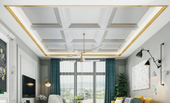 立体的大板吊顶设计,将整个空间的延伸感做得非常精妙,再加上唯美的灯饰,低调奢华的感觉瞬间流露出来。