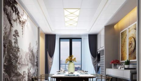 金属元素在轻奢风格里面,几乎是不可或缺的元素,从装饰线条、灯具、家具、摆饰等,都会植入金属元素,让空间显得更加精致。